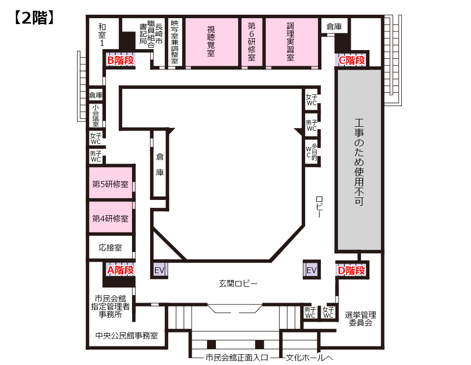 ※すべての研修室において、マイクの利用(視聴覚室をのぞく)や拡声機材の持ち込みはできません! -